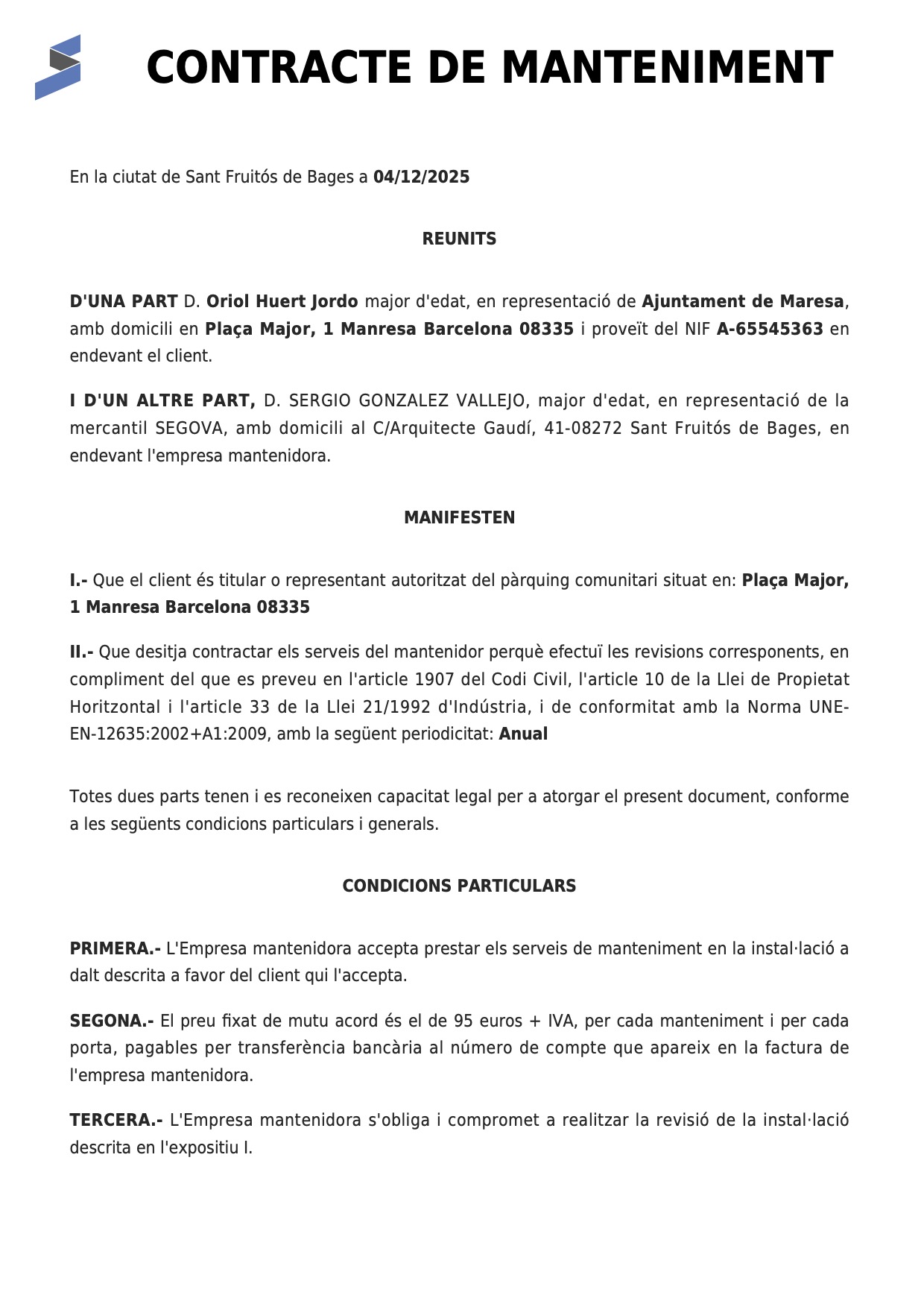 Contracte de manteniment per a portes de garatge de comunitats de veïns